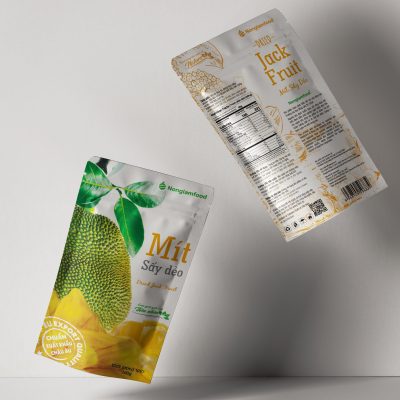Nonglamfood dried jackfruit in small aluminum pouch for distribution domestically and internationally